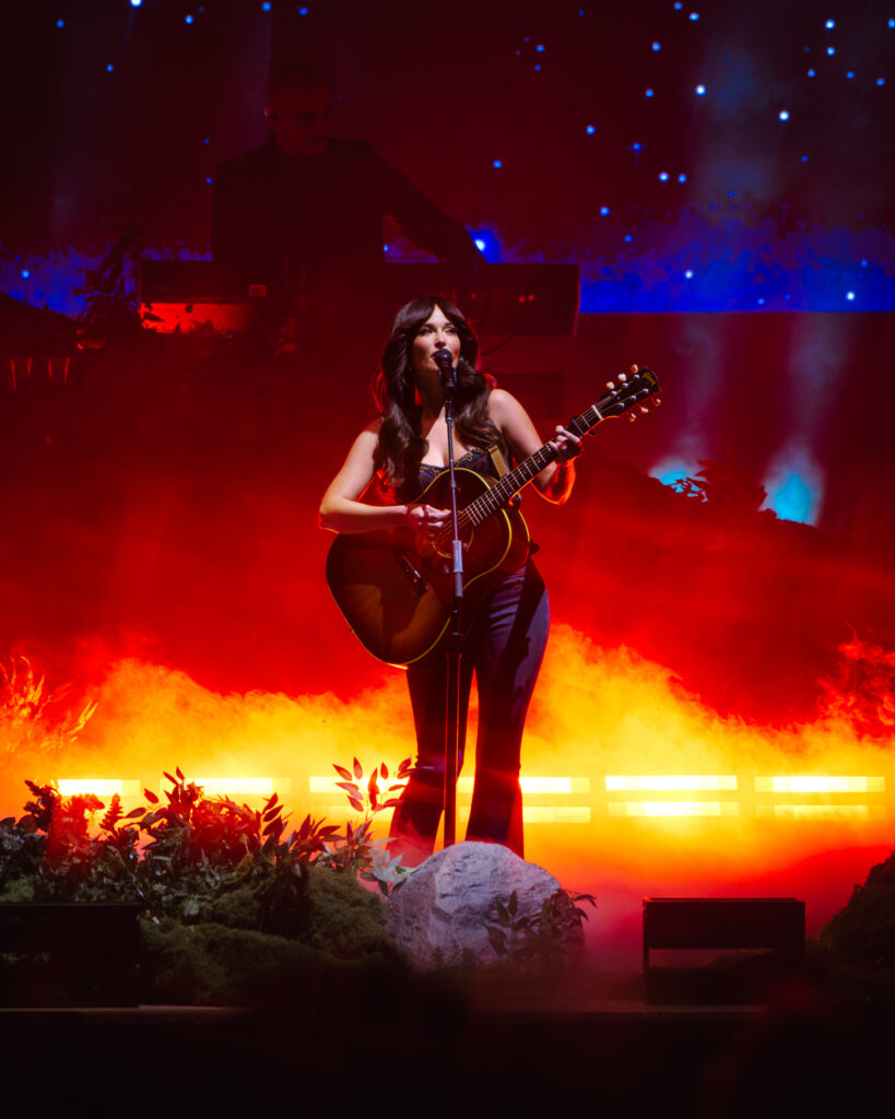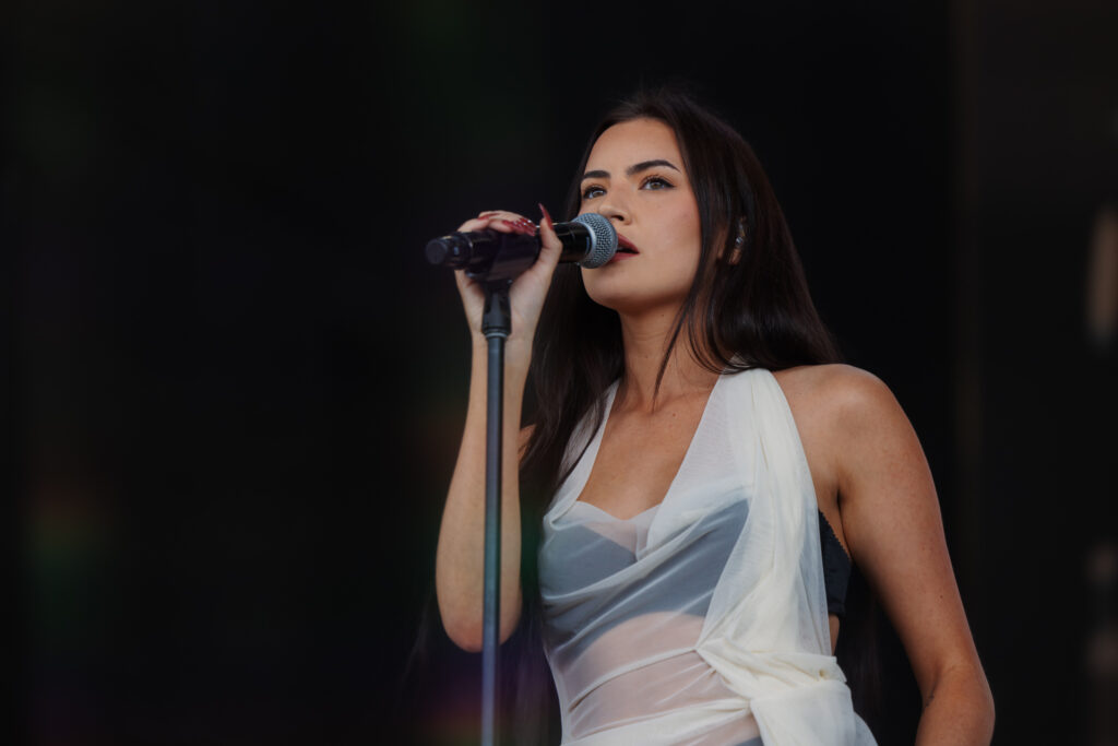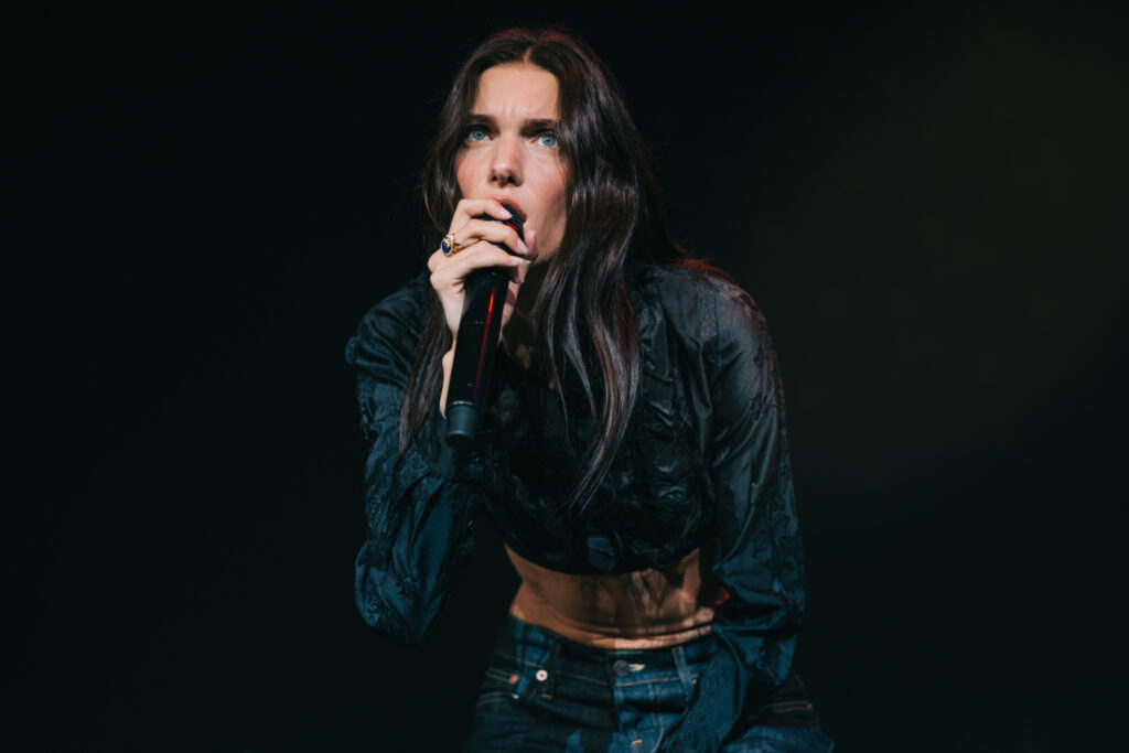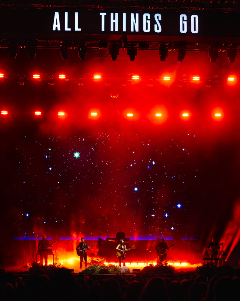 Noah Cyrus followed with one of the day’s most visually stunning sets. Her stage looked like a mossy forest, complete with rocks, soft lighting, and her full band, including a violinist. As the sunset poured across the stage, she appeared in a beautiful chainmail-like corset, opening with “I Saw the Mountains.” Her voice, raspy and rich, carried through the warm evening air. There were moments where it was easy to mistake her tone for her sister Miley’s, but Noah’s energy felt distinctly her own. “If There’s a Heaven” landed beautifully, leaving the audience swaying in silence.