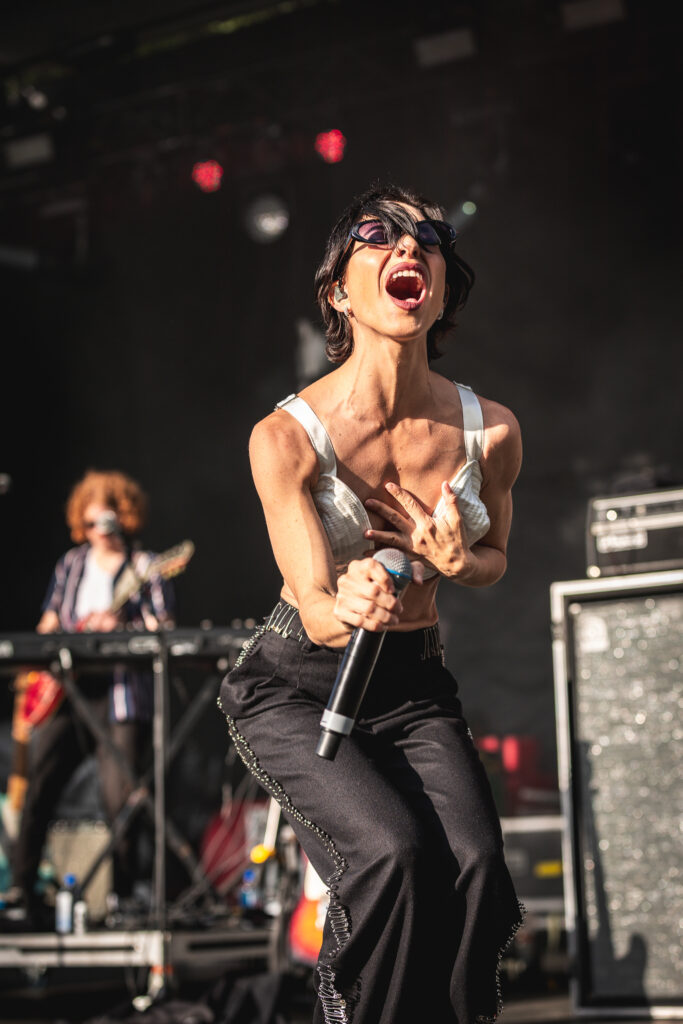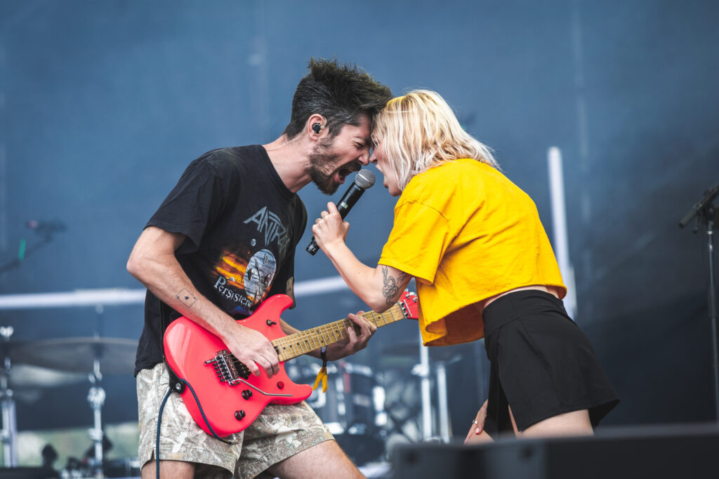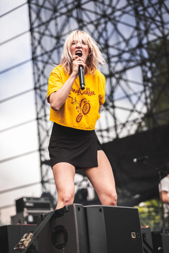 The first Main Stage act was Winona Fighter, a relatively new band based in Nashville, TN. After finishing their pre-show rituals on stage, frontwoman Coco Kinnon brought the crowd to a frenzy with her screaming vocals and high energy. Think early Paramore energy, but messier and weirder, in a good way. They’ve been grinding the DIY circuit and are finally getting some bigger festival love.