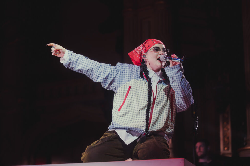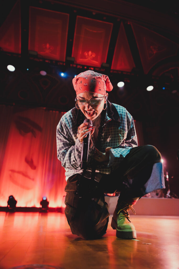 By the time Spencer Smith appeared, the anticipation had been building for hours. Her stage design leaned into the theme of The Art of Being A Mess, built around a stylized bus stop complete with a bench and a ringing payphone. It gave the show a sense of movement, like each song marked a different emotional stop along the way. When the lights dropped and the phone rang, the crowd screams, and she walked out to open with “IF KARMA DOESN’T GET YOU,” quickly followed by “Lighting the Flame” and “28.” For “Bigger Person,” the fans had prepared a special project and had distributed little pieces of paper ahead of the show asking the crowd to turn on their phone lights. It was one of the most beautiful, still moments of the night.