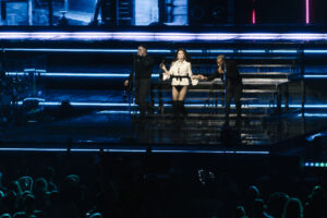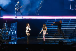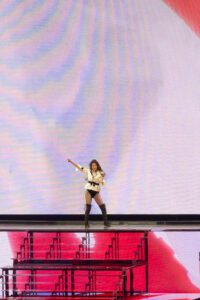 One of the highlights of the night was when Shania Twain invited two lucky fans onto the stage to don her iconic leopard print outfit from the “That Don’t Impress Me Much” music video. The joyous interaction left the fans, and undoubtedly the entire arena, beaming with delight.