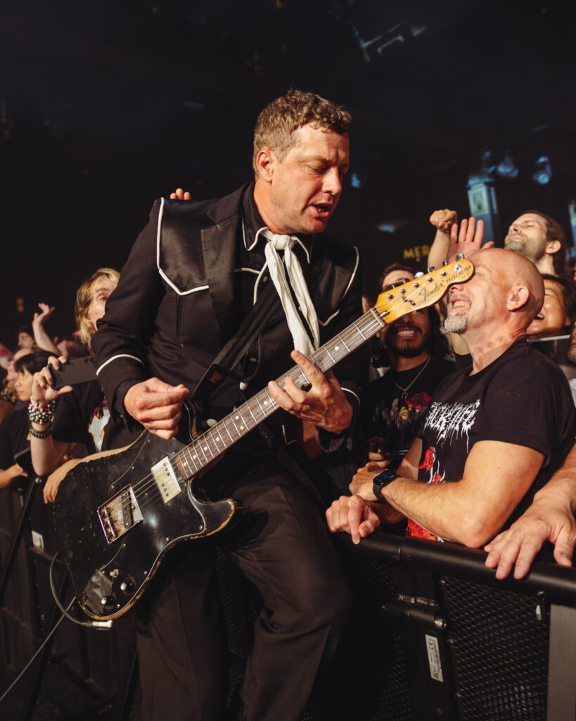 The crowd lost it for “Main Offender,” one of their oldest and most enduring anthems. Almqvist, drenched in sweat but still impossibly charming, decided this was the moment to poke fun at Vancouver’s reputation. “You’re too Canadian, too polite,” he teased, before demanding more volume. Later in the night, with sweat dripping from his brow, he deadpanned: “I didn’t know Vancouver was in the tropics!” The joke landed, because honestly, the Commodore felt like a sauna.
