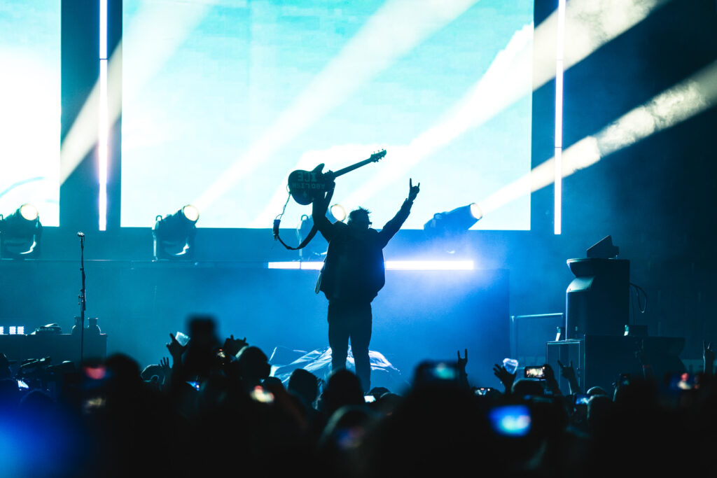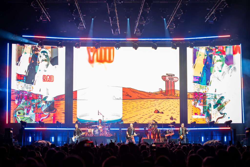 The setlist was deep, stretching across 20 tracks and touching nearly every major chapter of the band’s career. Smash, Americana, Rise and Fall, and Supercharged all got their moment. Songs like “Bad Habit,” “Hammerhead,” and “Make It All Right” sent the crowd into full meltdown mode. Fans didn’t just sing along, they gave everything back, lyric for lyric, letting the band know exactly how much these songs have meant over the years. The Offspring also kept things unpredictable, tossing in covers that somehow fit perfectly into the madness. “Hey Jude,” “I Wanna Be Sedated,” and even “In the Hall of the Mountain King” popped up. One of the most powerful moments of the night came when Dex sat down at the piano for “Gone Away,” pulling the entire arena into a quiet, emotional pause that hit just as hard as the chaos.