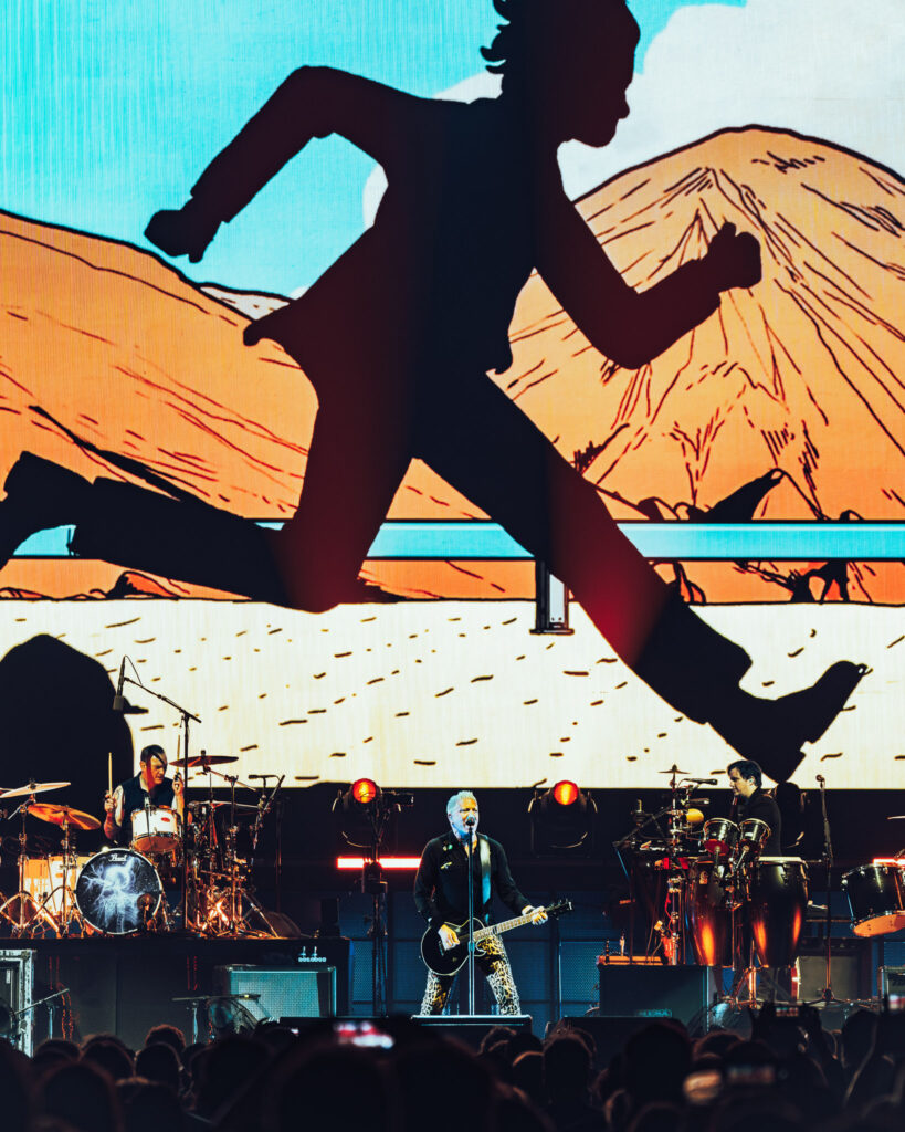 Then, it was go time. The Offspring burst onto the stage and wasted no time, opening with “Come Out and Play.” The reaction was instant. Fans were on their feet in seconds, screaming every word and even belting out the guitar riff like it was second nature. There was no warm up period here, just straight chaos. Noodles made his presence felt without saying a word, flashing Abolish ICE on the back of his guitar, a quiet but powerful reminder of punk’s roots. Front and center, Dexter was unstoppable. Locked in, bursting with energy, and sounding every bit as sharp as he did in the 90s. Any doubts about whether he still had it were gone before the first song even ended.