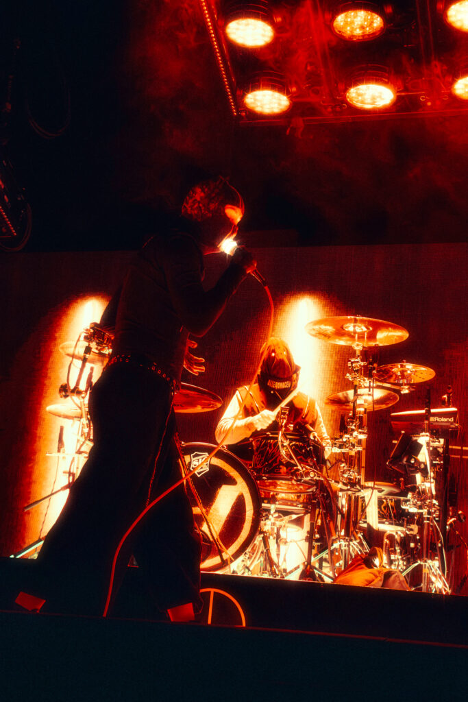 The band did not let the weather stop them from squeezing in as many songs as possible, as they performed “Tear in my Heart”, “Shy Away”, and a sparks-filled performance of “Heathens”. They also managed to play their B-Stage set, including setting a car on fire during a couple of the songs, and performed with fans who dressed up as their character “Ned” when they played “Chlorine”.