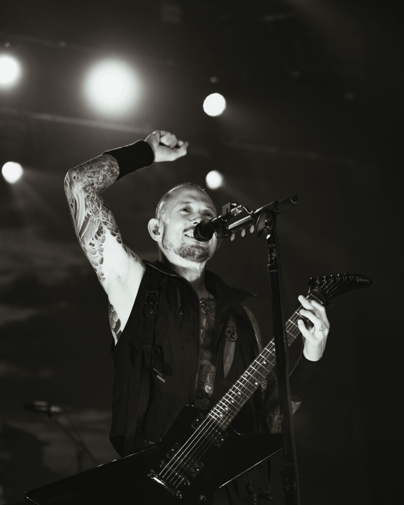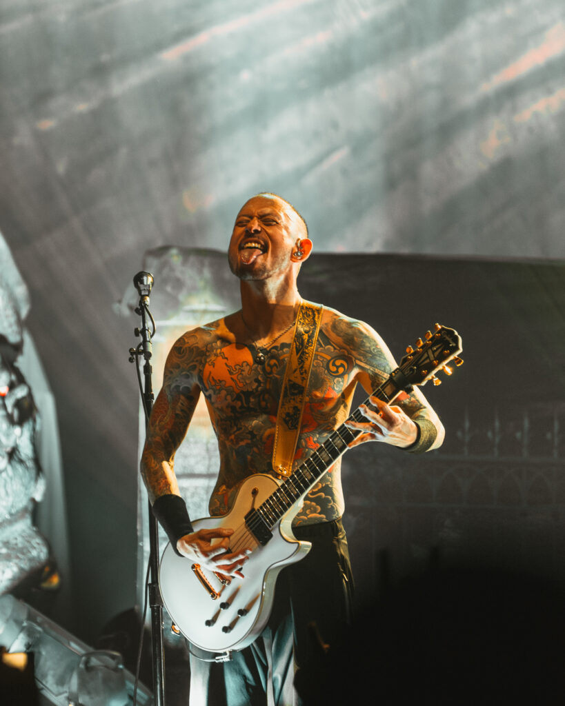 Then came Trivium, whose set felt like a masterclass in modern metal. Opening with “In Waves,” they tore through hits like “The Heart From Your Hate,” “Until the World Goes Down,” and “Bury Me With My Screams.” Mid-set, the band surprised the crowd with a birthday cake for guitarist Corey Beaulieu, prompting the packed theatre to erupt into a heartfelt “Happy Birthday.”
