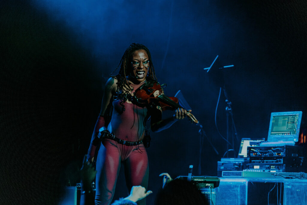 Dressed in a skin-tight, full body suit and wearing otherworldly grey contact lenses, Sudan Archives commanded a sold-out stage for her one-woman set at The Pearl. The deeply human themes of her songs, which sit in genre around house, techno, and R&B, were shared with the rowdy audience alongside recurring mechanical sounds and choreographed robotic movements. This examination of technology and humanity reminded that her artistry and expression transcend her talents as a singer, violinist, and beat-maker. Sudan Archives performed three encore songs, jumping off the stage to dance with the screaming crowd before leaving Vancouver with the parting words: “y’all are fucking lit.”