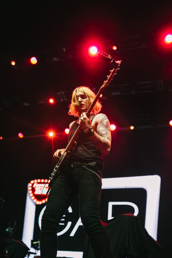 ALL TIME LOW took to the stage in a very low key way, with singer / guitarist Alex Gaskarth coming out to croon acoustically, a single spotlight on him, before the band took to the stage and exploded into songs off of Everyone’s Talking. The songs are explosively fun and catchy, with bit more bravado and punk enthusiasm behind them. Drummer Rian Dawson really lays into his custom drum kit, adding more punch into each stick lick and kick. A lot of punk attitude comes out of guitarist Jack Barakat and bassist Zachary Merrick, whose well timed jumps during songs and an apropro middle finger to the system showcases the bands youthful bratty attitude, even at this stage of their game.