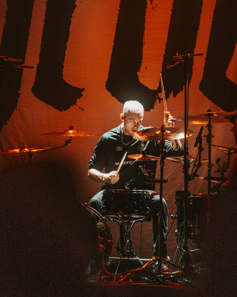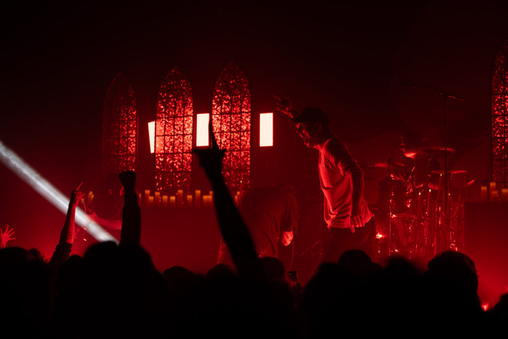 The night kicked off with Split Chain from Bristol, UK, hitting hard with tracks like “Future” and “Get Inside.” Thirty minutes in, and the crowd was already losing it. Then came 156/Silence, storming the stage with “Better Written Villain” and “Target Acquired,” relentless energy spilling over the room. Thrown closed the opener slot with a chaotic, fun set instructing the crowd on how to mosh, guitarist pulling off his own stunts, and the drummer swinging sticks like there’s no end. Songs like “On the Verge” and “Look at Me” kept the crowd screaming every line.