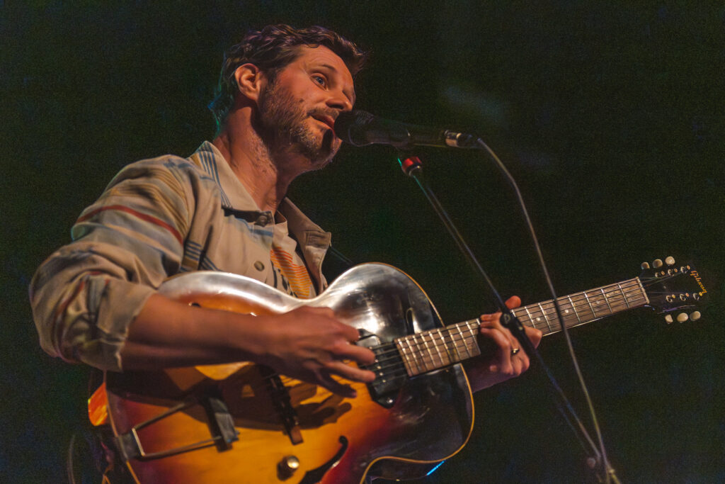 At 9:00 pm, Mangan and his band took to the stage. He gave a brief overview of Natural Light, which was recorded over the course of six days, in a cabin in southern Ontario with long-time bandmates Jason Haberman, Mike O’Brien and Don Kerr. The cabin was brought to the audience as the stage was dressed with vintage lamps, rugs, and a cozy fireplace.