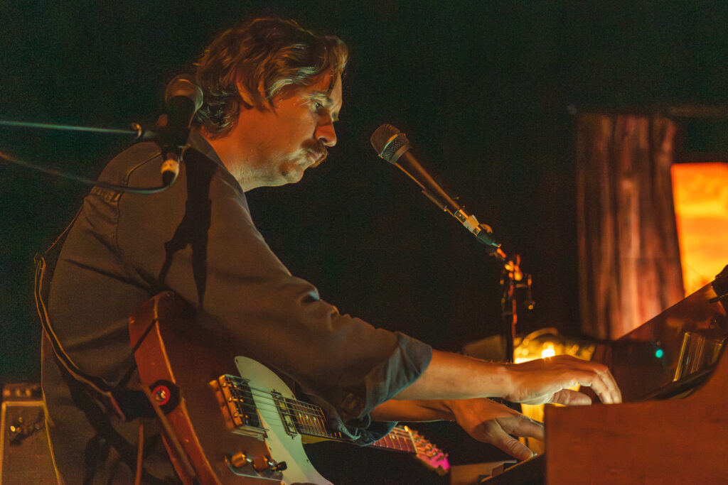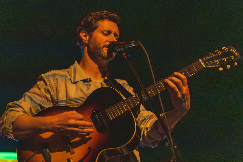 Mangan opened a curtain to reveal a screen with a beautiful picture of a river — the view that the band got to see every day while recording the album. He started the night out with the opening track, ‘It Might Be Raining’, which had the whole venue go silent as Mangan’s soft vocals and beautiful instrumentation from the band warmed up the audience.