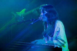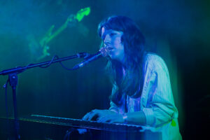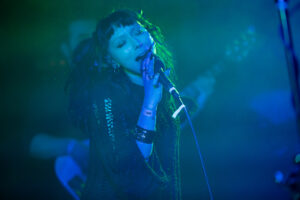 The band moved into “Slow Down,” with its ambient sound, absolute pristine, and heavier live. Beckett moves onstage like a pied piper, singing “kiss me like an over dramatic actor, that’s starving work”, perhaps a simple nod to the nature of the not so simple lives of Hollywood and the industry as a whole.