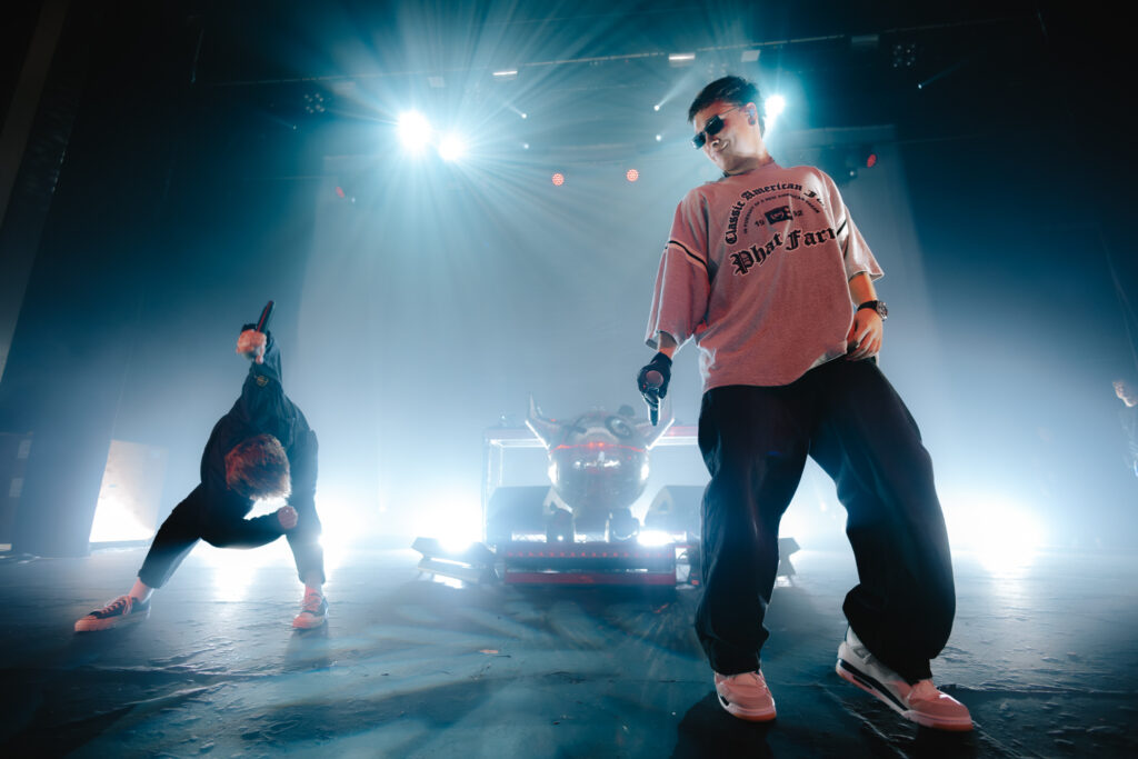 From the second Joey and Brae hit the stage, the energy was relentless. Their chemistry was the kind you can’t fake: Joey’s rapid-fire rhymes ping-ponging off Brae’s goofy charisma in a way that kept every song unpredictable. They bounced, sprinted, and flung themselves around like cartoon characters on a sugar rush, but it never felt gimmicky. It felt like controlled chaos, fueled by breakbeats, video game samples, and throwback flows that channelled early-2000s Beastie Boys while twisting them into something distinctly modern.