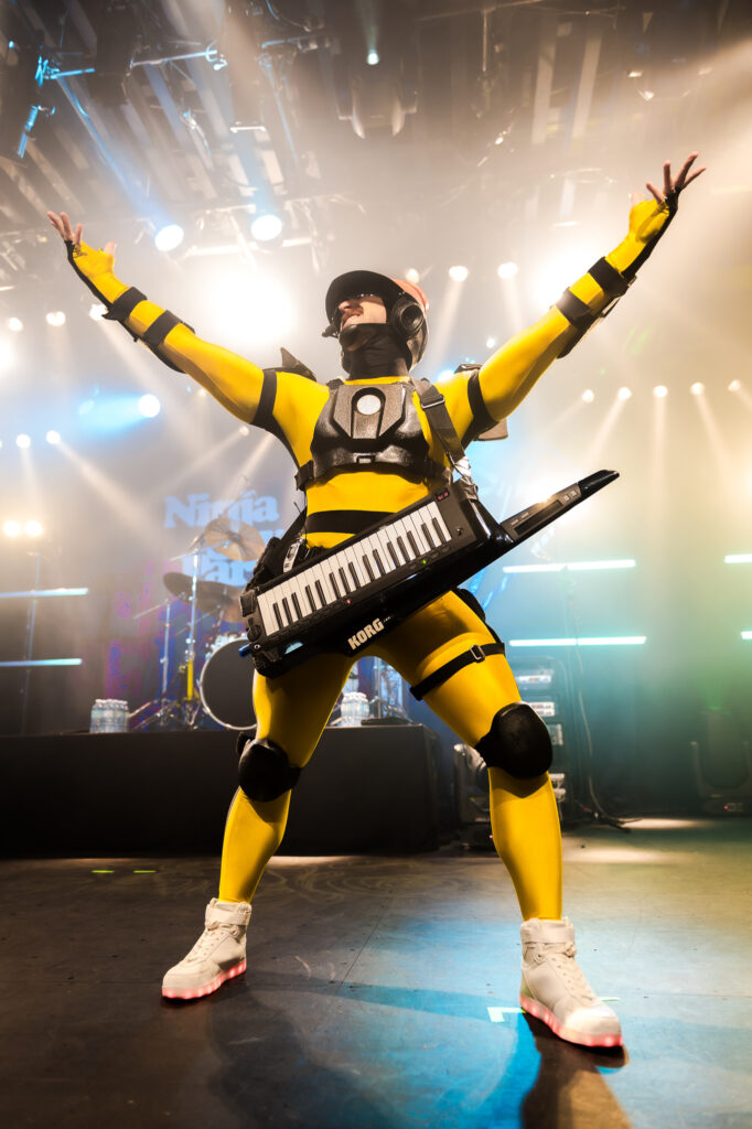 Dressed in their signature vibrant, futuristic costumes, TWRP’s keyboardist and vocalist Doctor Sung, guitarist Lord Phobos, bassist Commander Meouch, and drummer Havve Hogan served as both the opening act and the backing band for Ninja Sex Party. From hoverboards and keytars to high kicks and splits, and a blend of sci-funk and ’80s fusion tunes, TWRP kicked off the night with a perfect mix of chaotic energy and feel-good vibes.