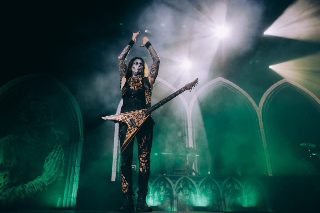 Right away, Powerwolf claimed the stage with a gothic church backdrop and operatic flair. Attila Dorn’s booming voice turned the theatre into his own cathedral, leading the crowd through howls, chants, and massive sing-alongs on “Armata Strigoi” and “Demons Are a Girl’s Best Friend.” Between the incense, the organ tones from Falk Maria Schlegel, and choreographed guitar moves from Matthew and Charles Greywolf, the show felt like a true rock opera.