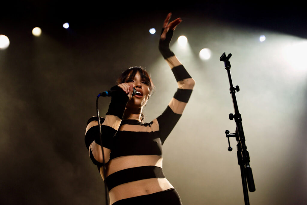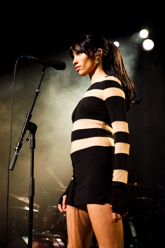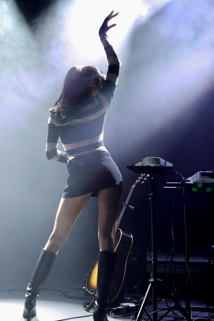Her songs have a beat, and are smooth, and they hit you. On stage she becomes something… other. She leans back, strikes a pose, and flirts unabashedly with the audience. She has that Kylie Minogue allure that draws you in, begging you to see past the glasses. Then she switches it up and turns into a pop-rock variation of Carly Rae. Or maybe Lauren Mayberry, from Chvrches, as she spins and spins her way across the stage from outfit to outfit? It’s wild. Check out our photos below, and you’ll see what we mean.