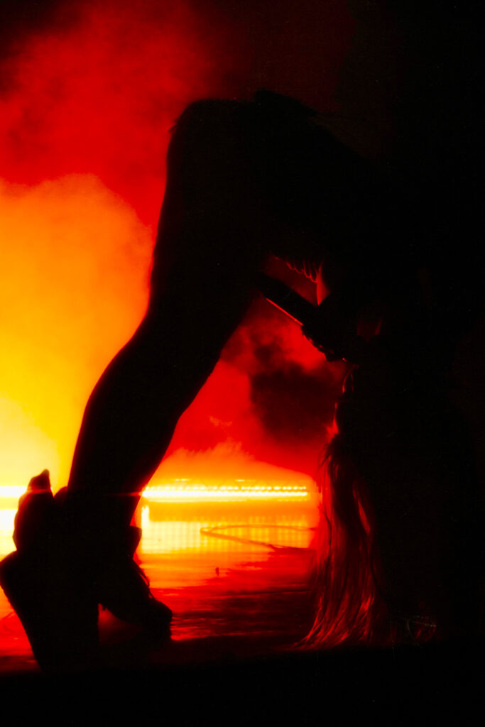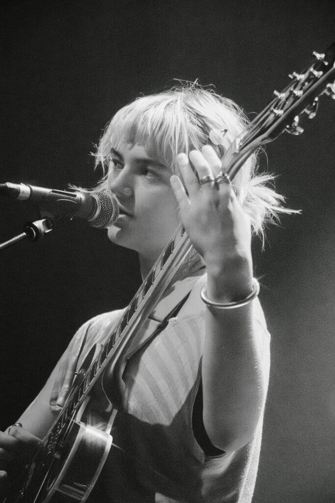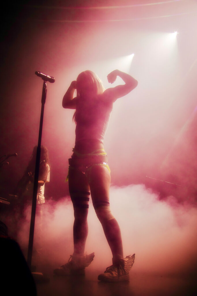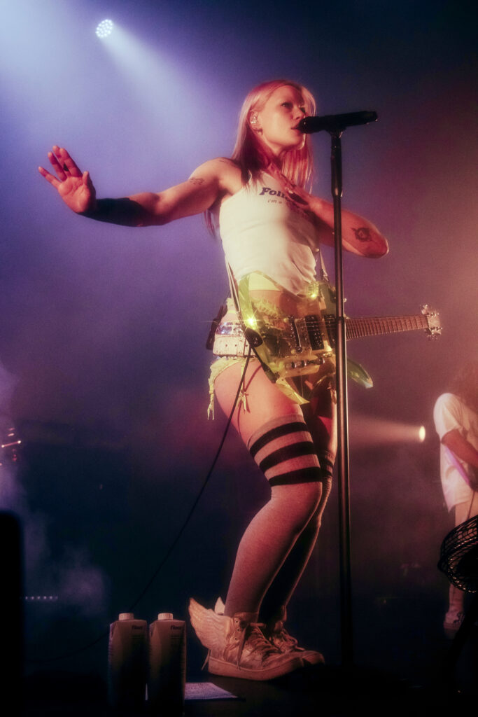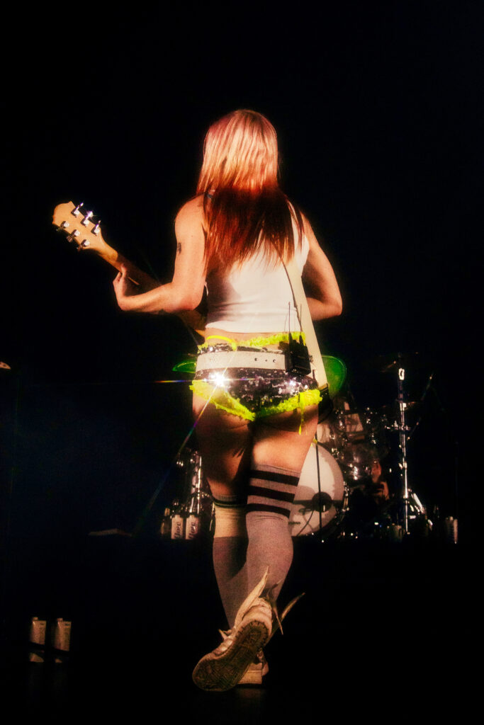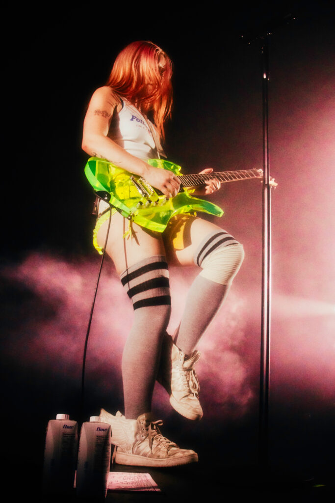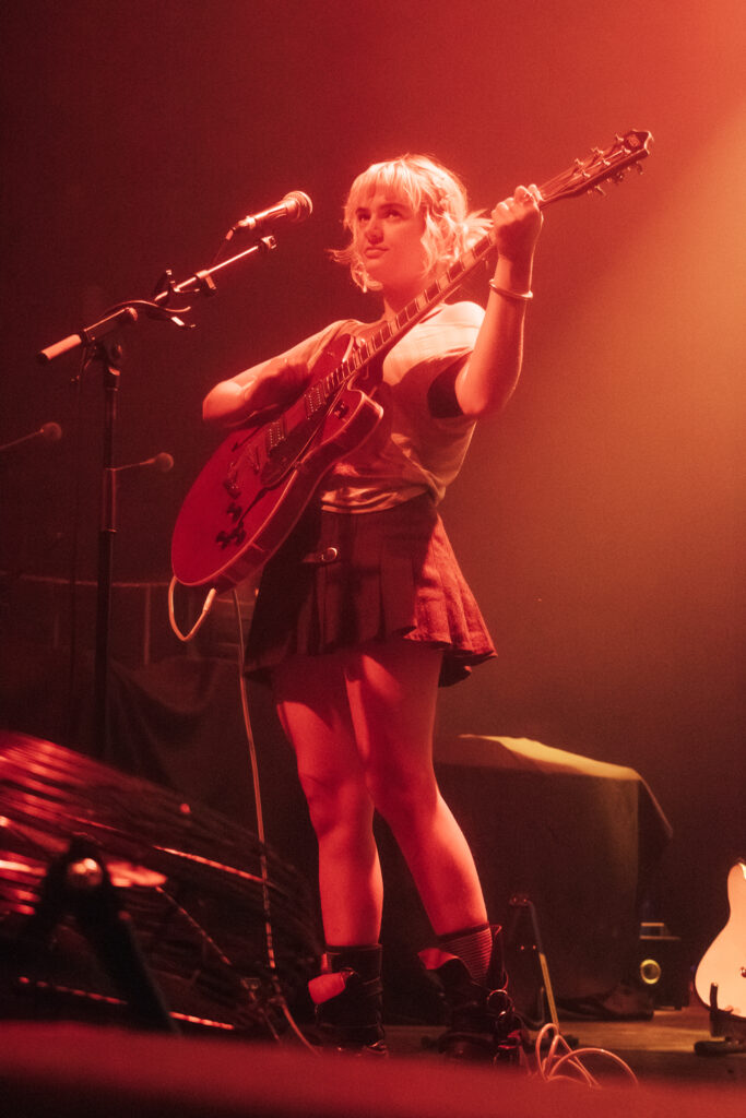 Wet Leg’s Moistourizer tour, quite literally, started with a bang. Following the opening act Mary in the Junkyard, intense, bright lights illuminated the stage, and from the moment the band took the stage, it was clear that this was no ordinary gig: this was a full-on sensory experience. Rhian Teasdale struck her signature pose, a flex of her muscles, and opened the night with an energetic performance of “catch these fists.”