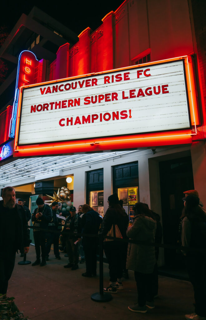 Vancouver Rise FC kept the celebration rolling on Wednesday night, packing out the Hollywood Theatre for their championship event. Fans rushed for the free tickets, and they vanished almost instantly which is no shock after the club’s big weekend.