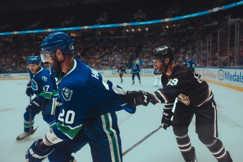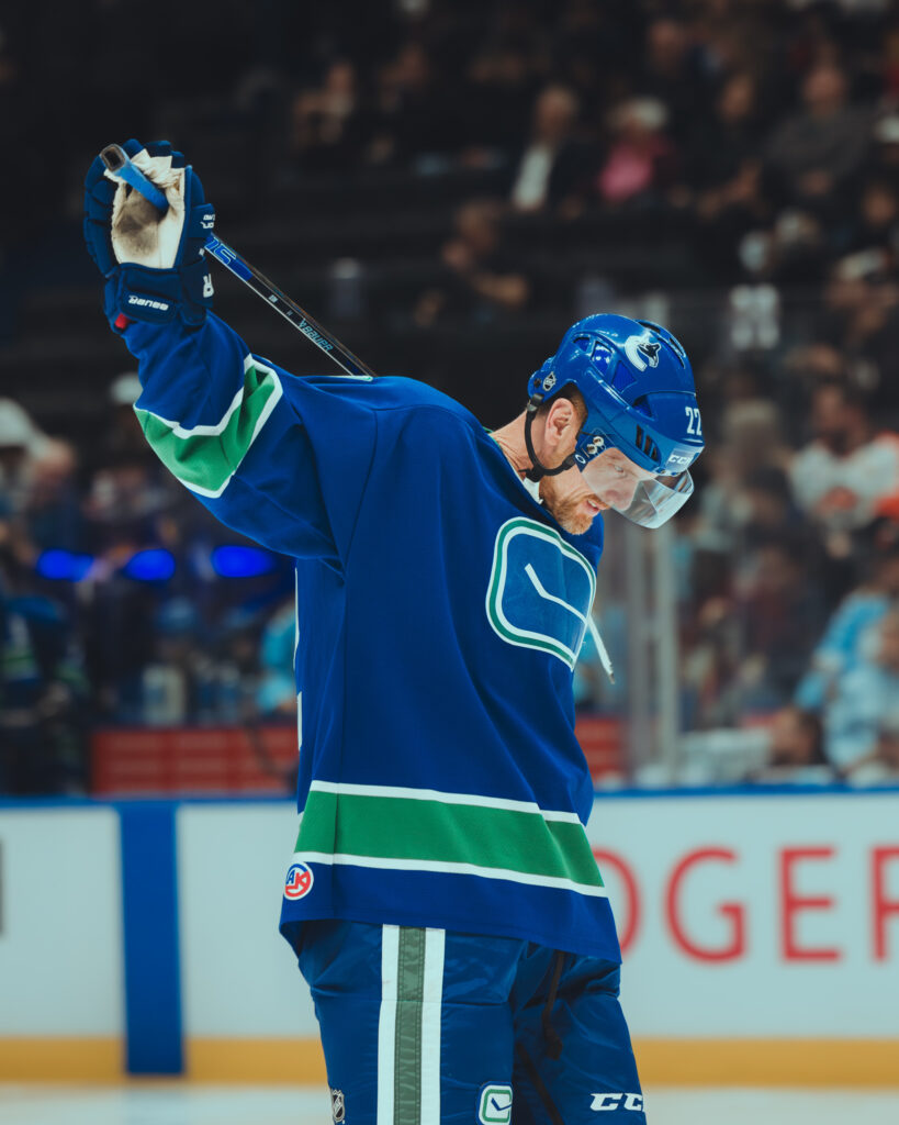 The Sedins playing together again was the headline. Seven years had passed since fans last saw the twins share the ice so it felt special. At one point, the twins swapped jerseys with brothers Jordan and Brandon Nolan and played a shift for each other’s teams. There was no mercy, just laughs.