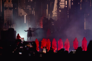 The setlist for the night was a carefully curated journey through The Weeknd‘s discography, taking the audience on an emotional rollercoaster. From the very beginning with “Alone Again”, the atmosphere was electric, with the crowd’s energy palpable. “Gasoline” and “Sacrifice” had the audience dancing and singing along, as if the heat was merely an afterthought.